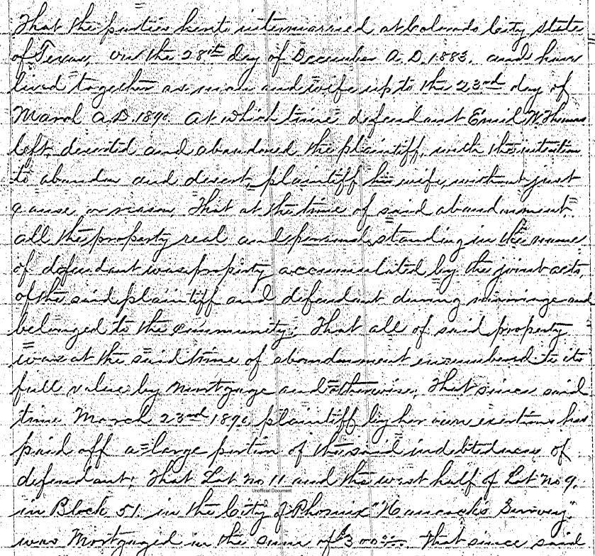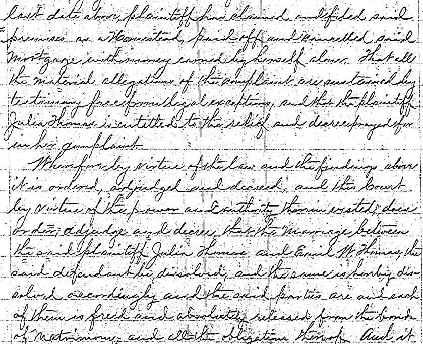 Perhaps the most interesting facet is what happened just before and after Waltz died. Julia's financial survival and then turn around after Emil deserted her. Recall that Emil took all the capital out of their properties before he left. Julia as essentially bankrupt. Yet, some how she not only survived, but retained all the property she and Emil had owned, and she met the financial needs of her business. And according to her divorce record the judge noted she had done it by herself. Yet, she could not borrow monies from a bank, or such, as she had no collateral. From somewhere she almost assuredly had help.