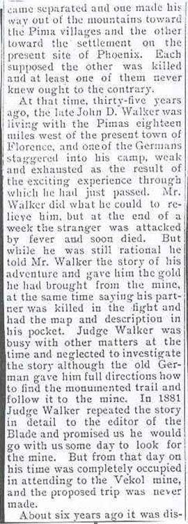 You wrote: I've done a lot of looking and thinking on this...I do believe that the Apache Jack/George Scholey story by Bark is the first detailed reference to a Peralta massacre that I personally have seen...take that with the caveat that my library and/or knowledge of this subject is probably ...