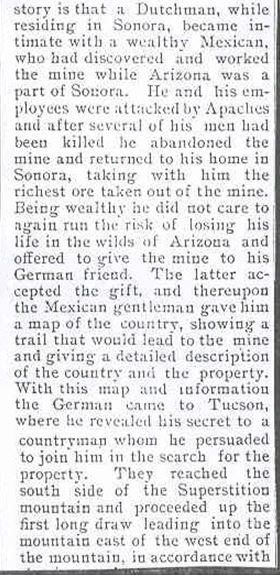 The start of the article reads: "From the Chicago Inter-Ocean". The Chicago Inter-Ocean was a Chicago newspaper. So I would assume that the article was also/originally printed in that newspaper. This would seem to be the earliest account of the Dutchman legend as we know it today -- two Germans, mine originally owned by a Mexican, location somewhere around the Salt River in the mountains, etc.